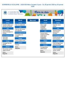 menu sommereux du 26 au 30 janvier