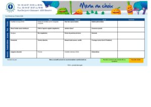 MENU DU 23 AU 27 FEVRIER 2026