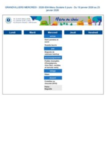 menu mercredi du 19 au 23 janvier